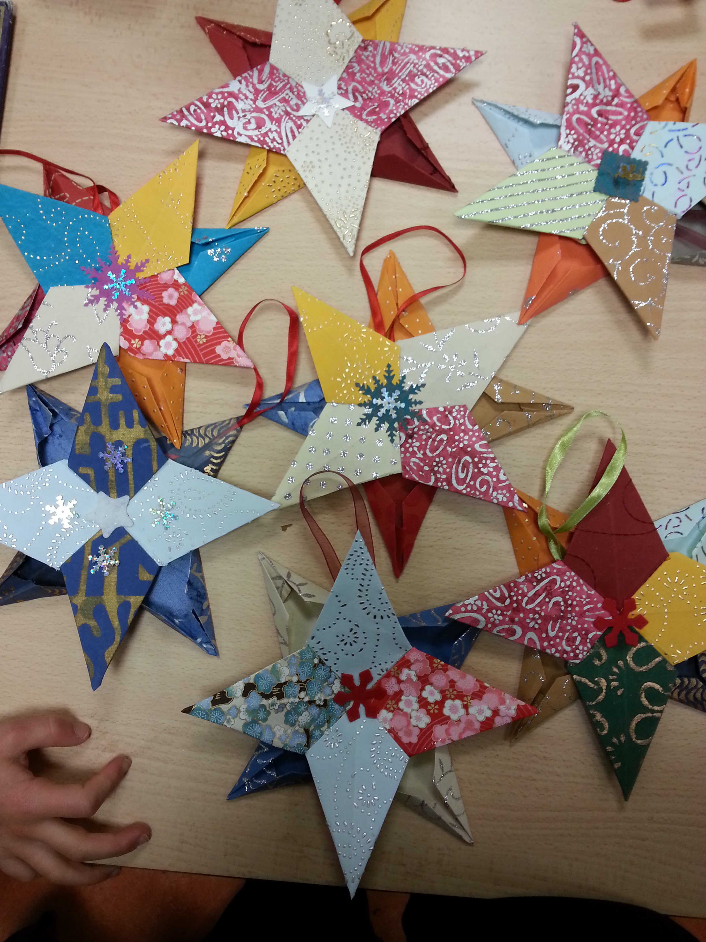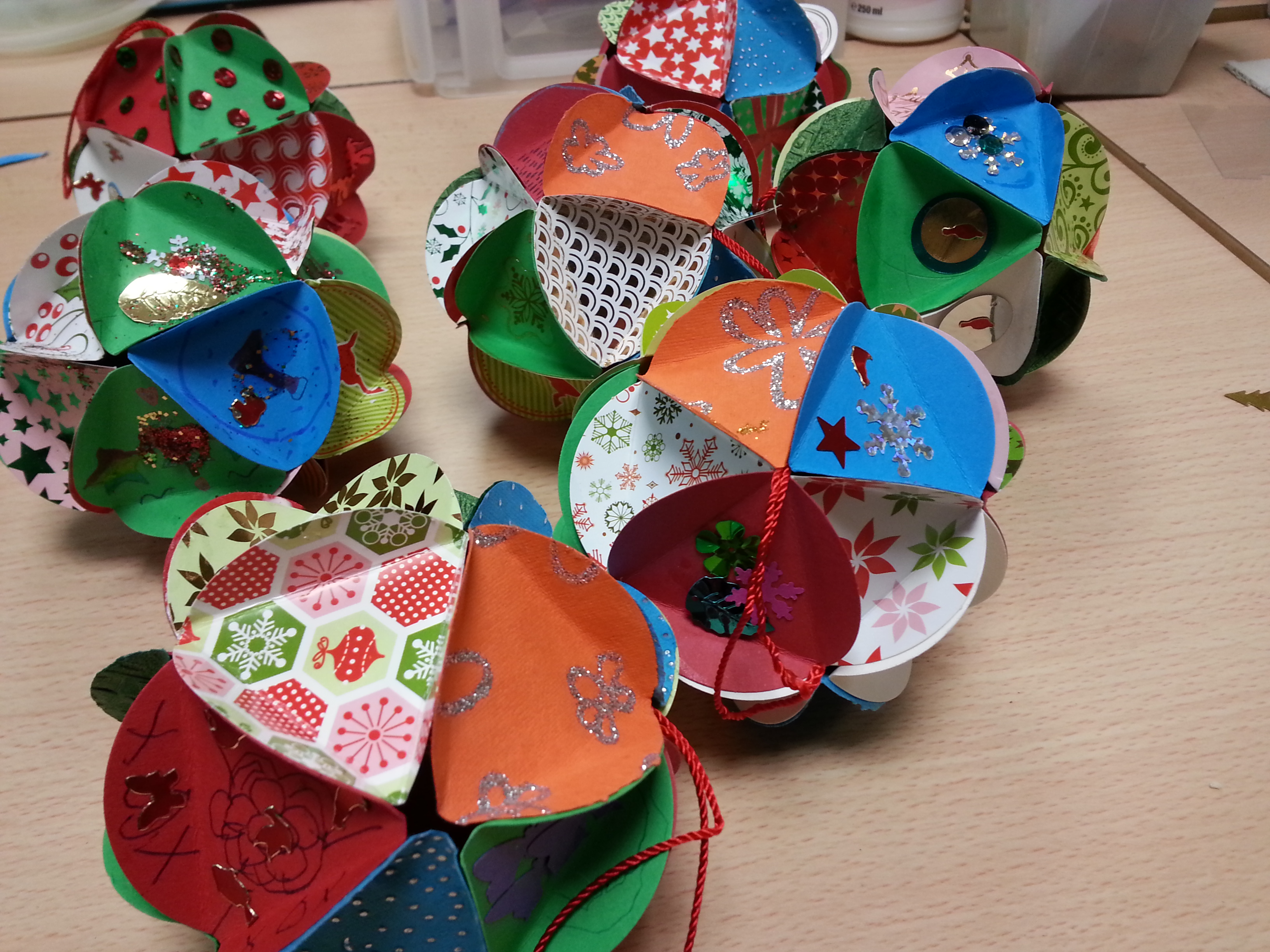 de jolies décorations très colorées, bravo à ces petits lutins.